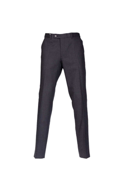Брюки полуприлегающего силуэта с классической посадкой. Модель выполнена из шерстяной ткани запатентованной марки «Marzotto». Гульфик на молнии, пояс застегивается на две пуговицы и крючок. Имеет два боковых кармана и два задних с застежкой на пуговицы. Все пуговицы из натурального рога.