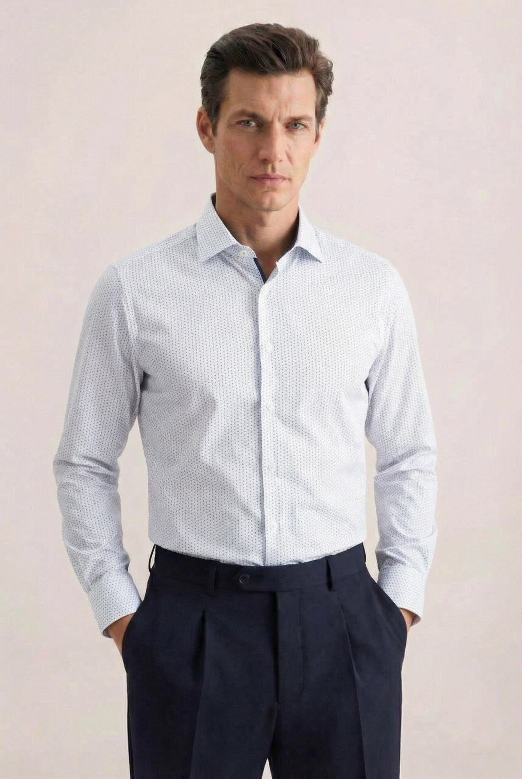 Сорочка для повседневной носки, полуприлегающего силуэта из высококачественного хлопка с обработкой EASY IRON (легкий уход). Без кармана. Регулируемый манжет. Прекрасно сочетается с классическими костюмами.