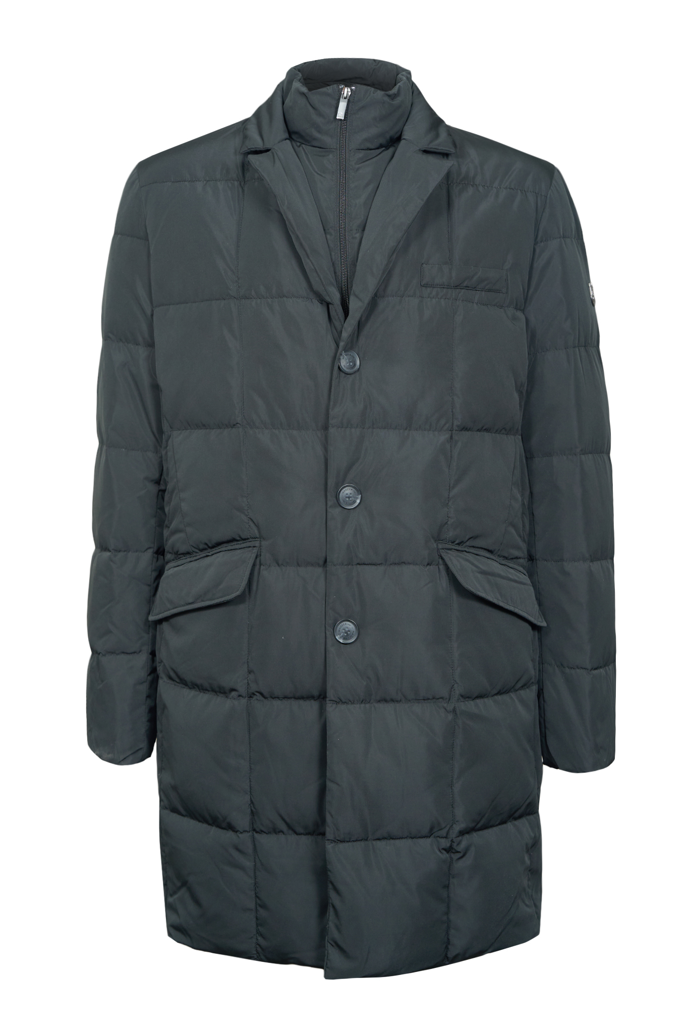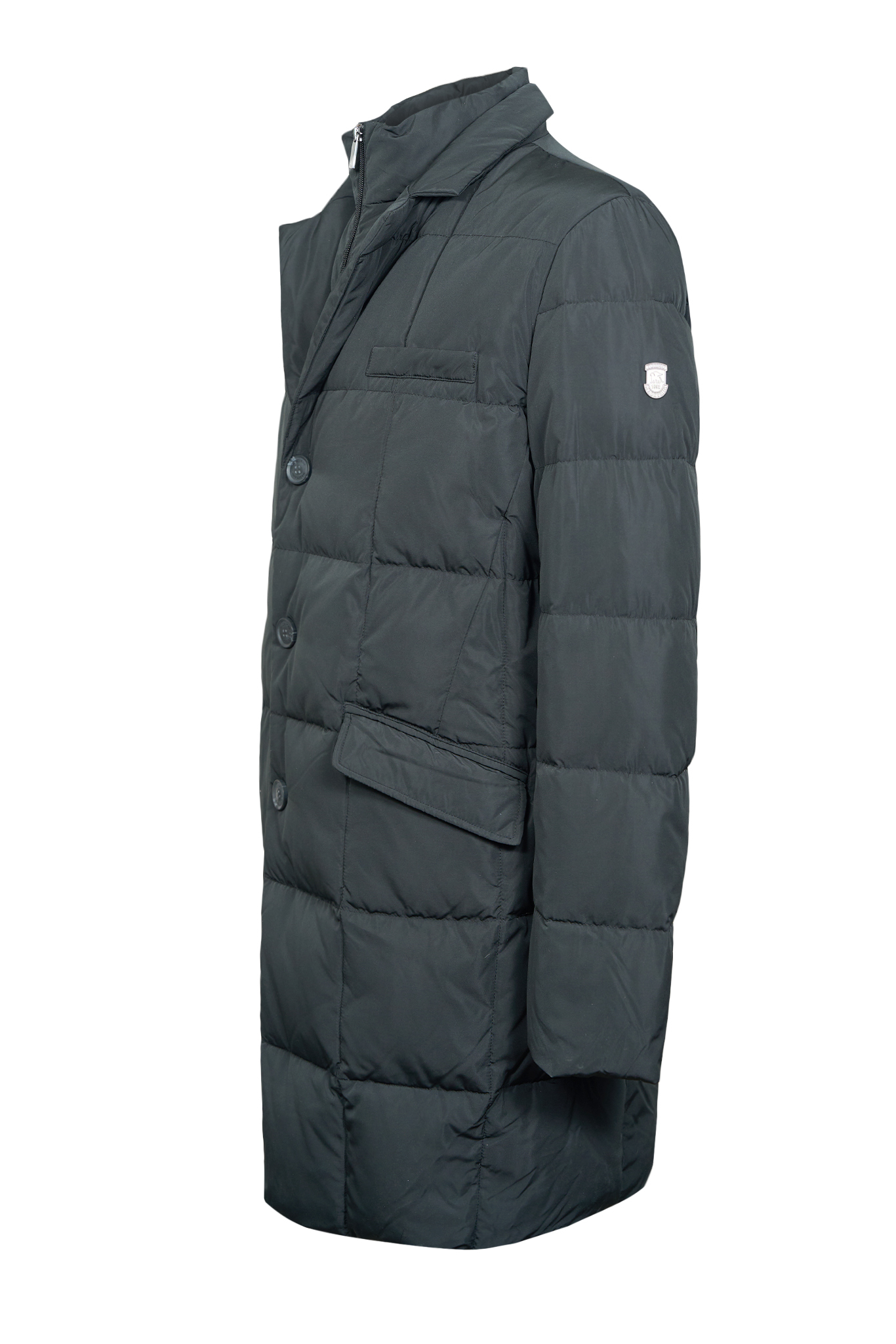 Пуховик MADZERINI без капюшона, прямого силуэта из ткани с высокой степенью защиты от ветра и влаги. Внутри отстегивающаяся манишка с воротником-стойка. Застежка на кнопках с декоративными пуговицами. Три наружных кармана. Два внутренних кармана на молнии. На левом рукаве фирменный логотип. Внутреннее наполнение: 90/10 утиный пух-перо. Отлично подходит для повседневной носки.