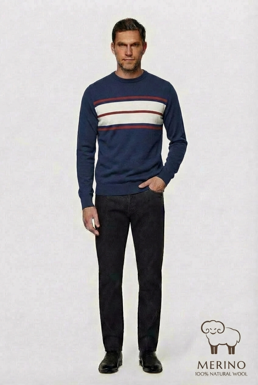 Джемпер CAIOMARIO полуприлегающего силуэта из высококачественной шерсти мериноса «Merino wool»- это тонкая, мягкая и очень качественная шерсть. Она ценится за свои уникальные свойства, такие как превосходная терморегуляция (сохраняет тепло в холод и прохладу в жару), гигроскопичность (хорошо впитывает влагу, но быстро сохнет) и приятная на ощупь мягкость, благодаря которой она не «колется». Округлый вырез горловины. Передняя часть с рисунком, рукава и спинка однотонные. Прекрасно сочетается с джинсами и брюками . Стильная и элегантная вещь отлично подойдет для повседневной носки. Выбирайте качество, выбирайте стиль, выбирайте CAIOMARIO!