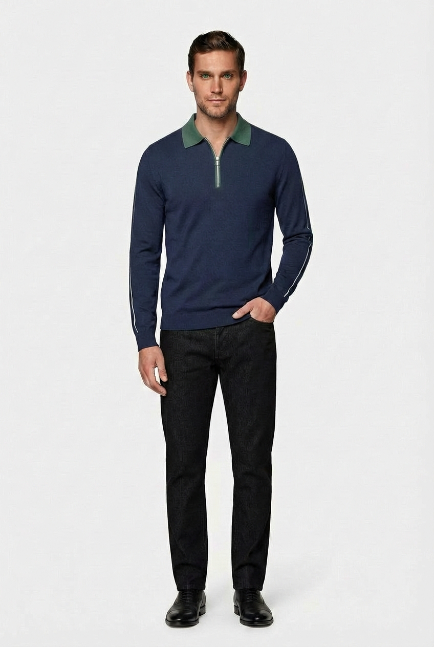 Джемпер-поло CAIOMARIO полуприлегающего силуэта, из инновационного высококачественного трикотажа тенсель (в основе лежит 100% целлюлоза из эвкалипта). Изделия из такого трикотажа отличаются мягкостью, прочностью, гипоаллергенностью и хорошей воздухопроницаемостью, благодаря чему ткань приятна в носке и подходит для регулирования температуры тела. Воротник отложной. Застежка на короткую молнию. Низ изделия и рукавов на резинке. Прекрасно сочетается с джинсами и брюками . Стильная и элегантная вещь отлично подойдет для повседневной носки. Выбирайте качество, выбирайте стиль, выбирайте CAIOMARIO!
